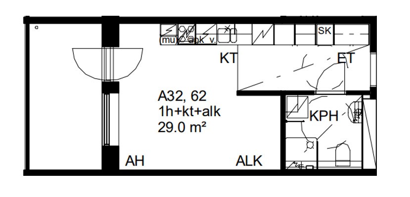 Asunnon koko: 29 m2