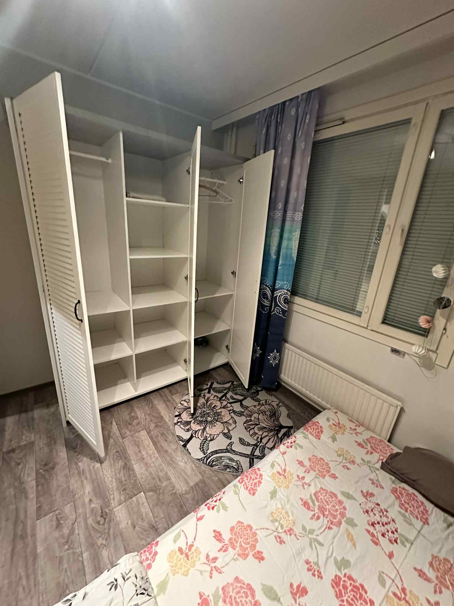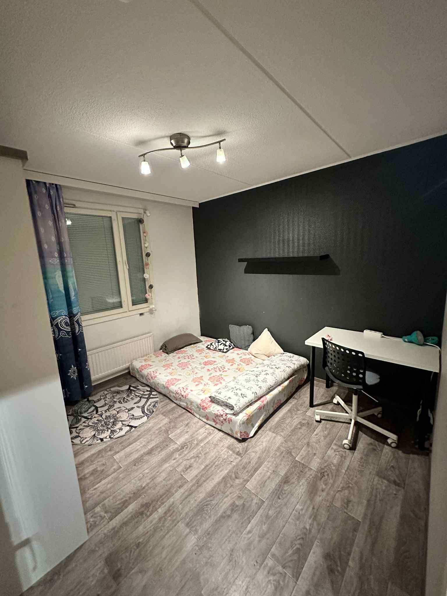Täysin kalustettu ja muuttovalmis oma makuuhuone jaetussa asunnossa.